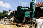 毅政牌ZL1SQW型三輪車自走式喂料器、玉米脫粒機和清選機一體機作業(yè)視頻